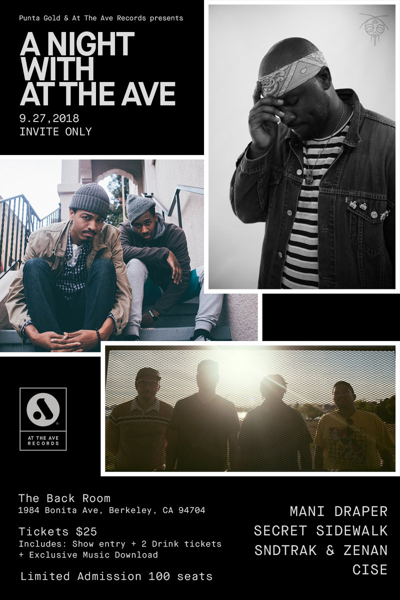 1 ticket to A Night with At The Ave (Private Show) featuring Mani Draper, Secret Sidewalk, SNDTRAK & ZENAN and Cise. Ticket includes 2 drinks + exclusive track download.